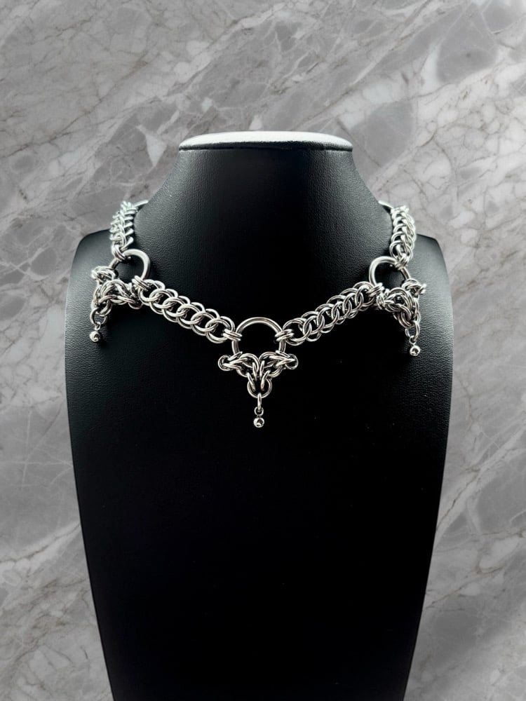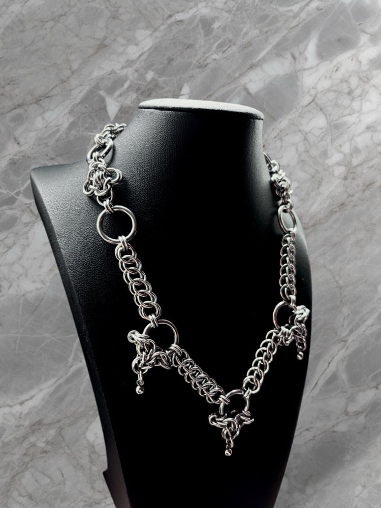 This piece is made from 100% stainless steel materials and measures 16 inches in total length and is adjustable! Clasp anywhere for desired length